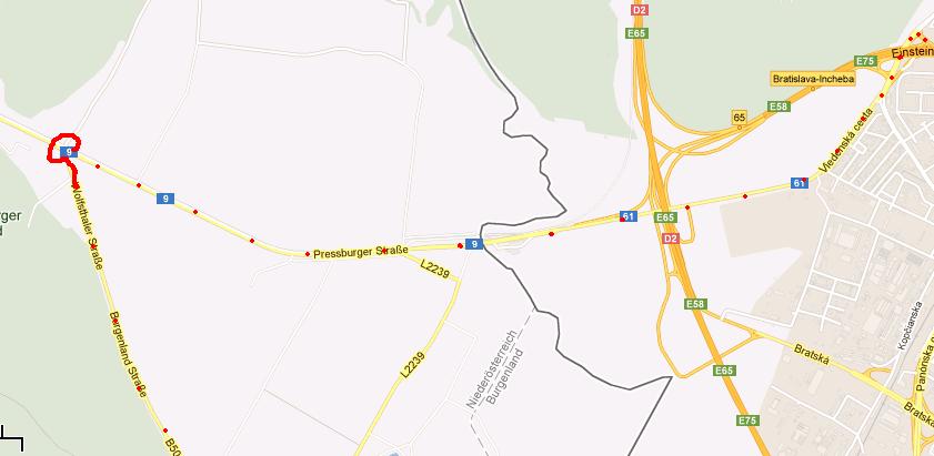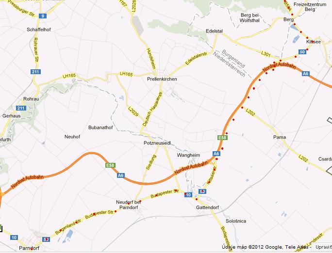Parndorf bez diaľničnej...( od Kittsee je súbežná cesta s diaľnicou )