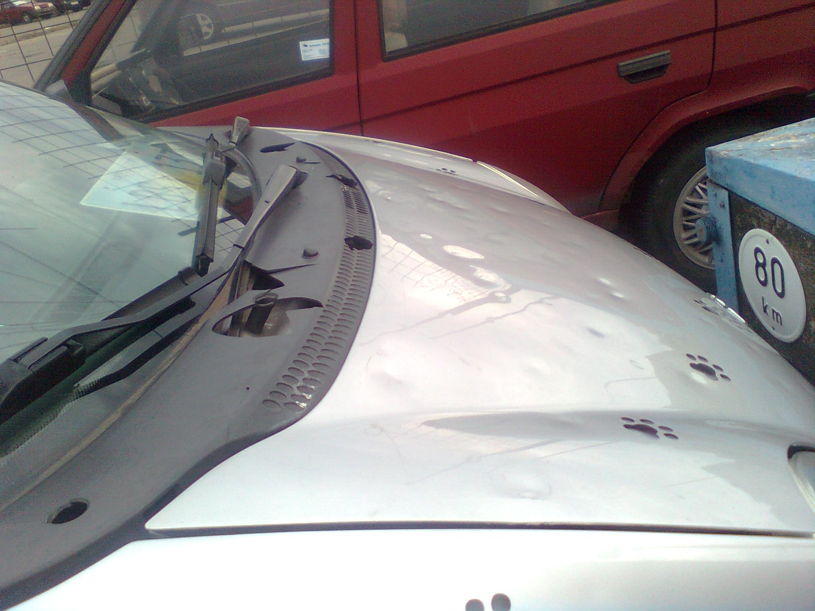 Kroupy co se přehnali nad Chodvem mě zničili celou kapotu,blatník a dveře na celé levé straně jak šel vítr.