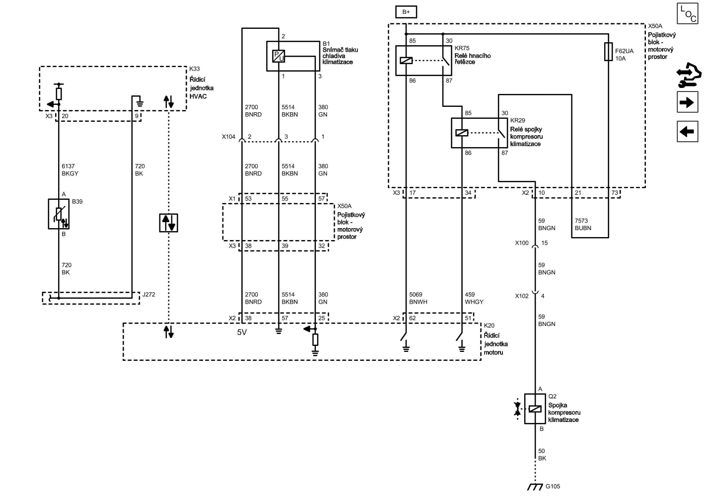 Tady je vidět, jak je ovl. např. spojka kompresoru klimy - vše jde z řídící jednotky a panel HVAC je na datové sběrnici.