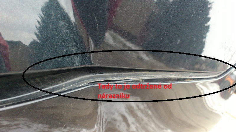 na nárazníku je prasklina asi 20-30cm a právě na tom boku je takový vnitřní lem (do kterého se ten šroubek vmontuje) který je odtrhnutý po celé délce.