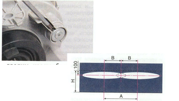 dnes jsem měnil žárovku v hlavním světlometu a při té příležitosti jsem zkusil nastavit světlomety podle návodu v ruském manuálu. Jinej jsem nenašel.