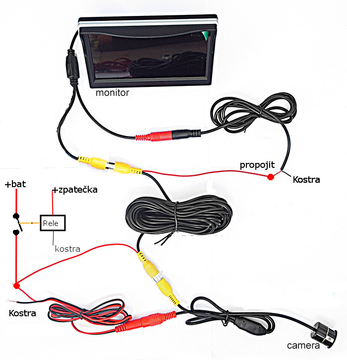 To je ok. Ak by som kúpil ten VIDEO kábel,tak spojím dva žlté VIDEO konce a ten ČERVENÝ kábel na +12 V kábel ktorý ide zo spiatočky?