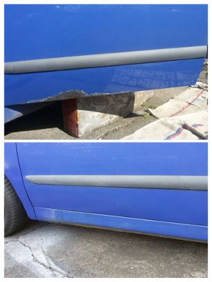 ). Prvotní servis byl poměrně náročný, protože do toho někdo posledních pár let jenom lil benzín. Výměna rozvodů (termín byl na hraně, nájezd 90000 + 11 let stáří), oleje, klíňáku a kladky, předních kotoučů (totálně vyrezlé) a desek, zadních pružin (ulomené), sražení hran na bubnech. Motor 1,2 16V, ročník 2007.