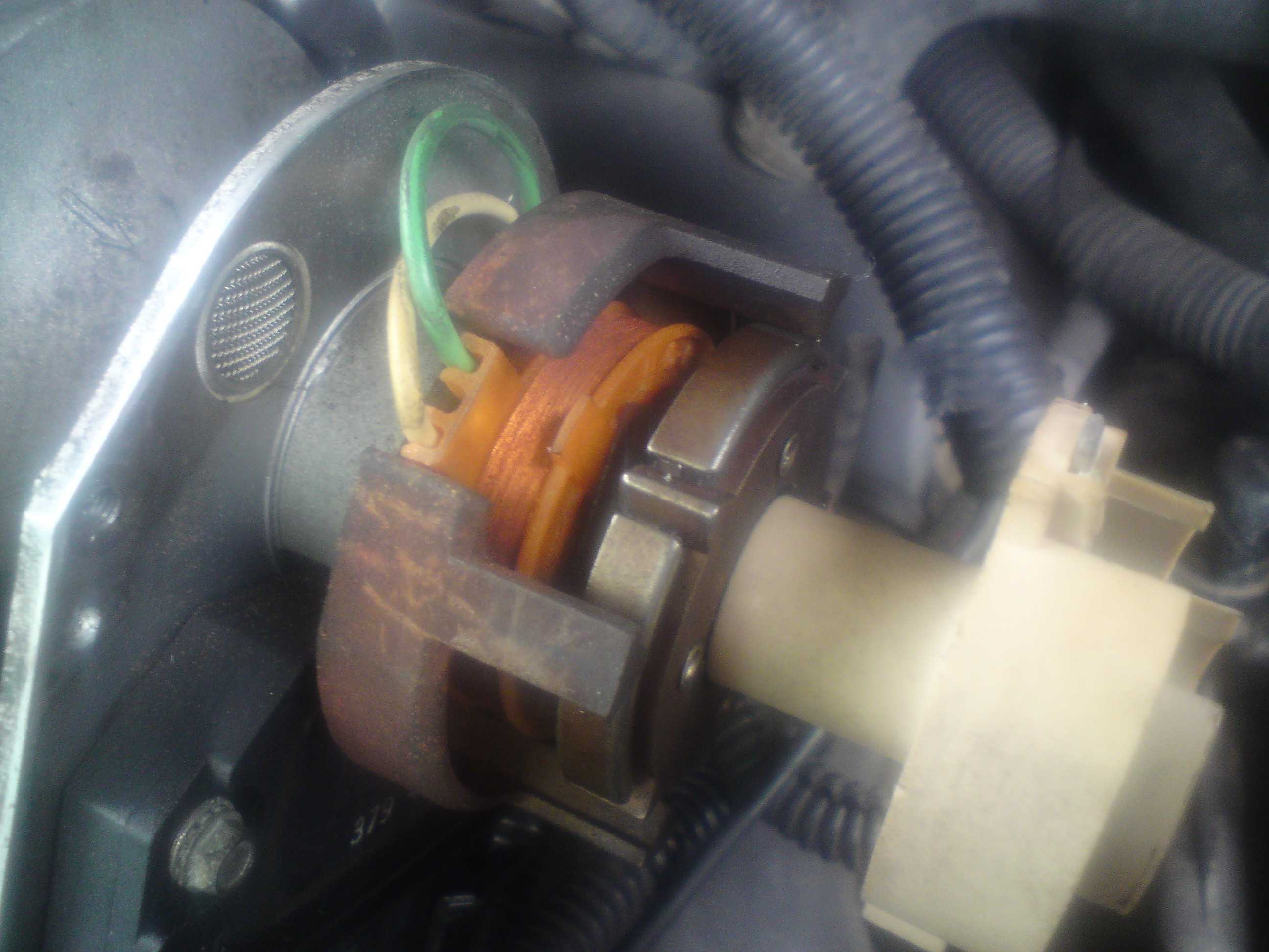 Vyměnil jsem kabely ke svíčkám, svíčky. Dělalo to stále. Byl jsem u opraváře, měřil elektriku, strávil jsem tam asi 3 hodiny, měření prováděl i za jízdy, ale na nic nepřišel. Doporučil mi výměnu hlavy rozděovače a rotor-palec, viz.foto. To jsem udělal, změna se nečekala, šlo o výměnu opotřebováných částí.
