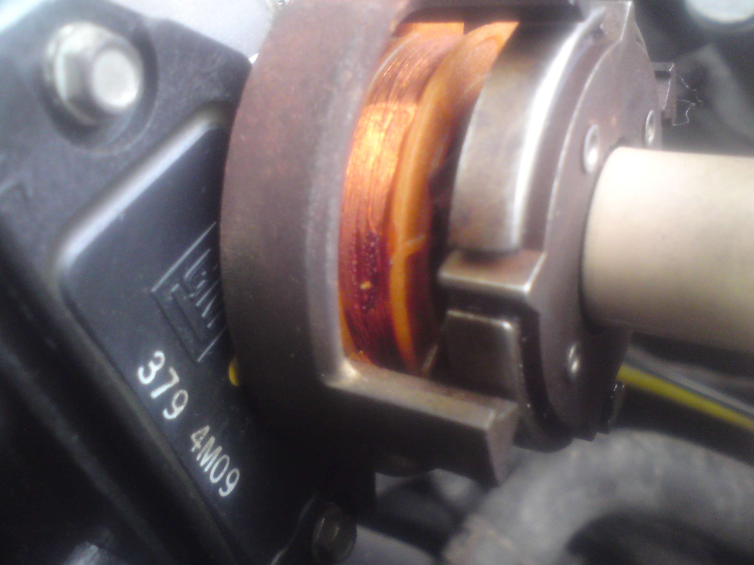 Tak konečně sem se dostal i výměně té cívky. Nakonec to ani nebolelo a šlo to celkem dobře, až na vyndavání toho plíšku co jde skrz osku.. Pak jsem to ještě blbě dal dohromady (otočeno o 180°). Ale to jsem jen posunul kabely. Auto nastartovalo, to bylo dobré znamení.. Jinak ta stará cívka nevypadá nějak špatně, viz. foto.