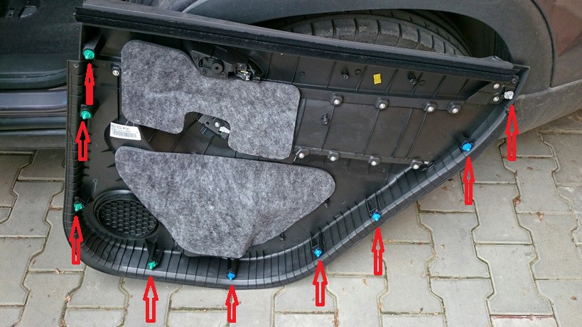 Pro účely tlumení dveří a instalace nových repro jsem je rozebral, tady je postup:
