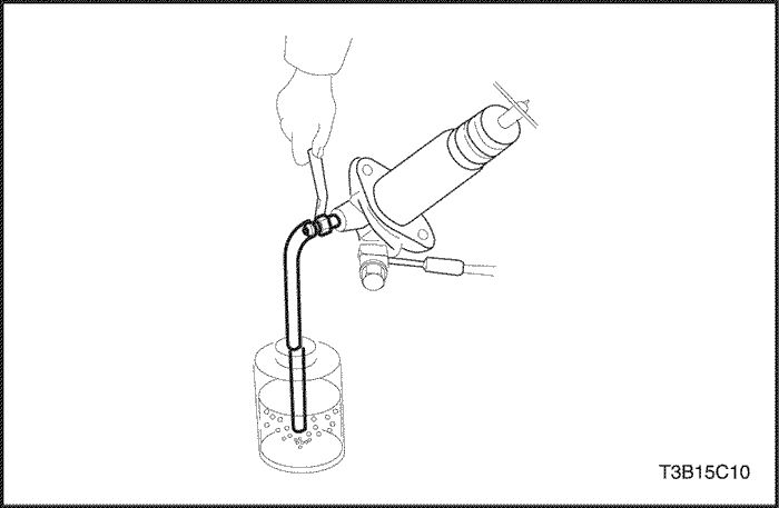 3.Při stlačeném spojkovém pedálu uvolněte odvzdušňovací šroub, dokud nezačne vytékat kapalina. Uzavřete odvzdušňovací šroub.
