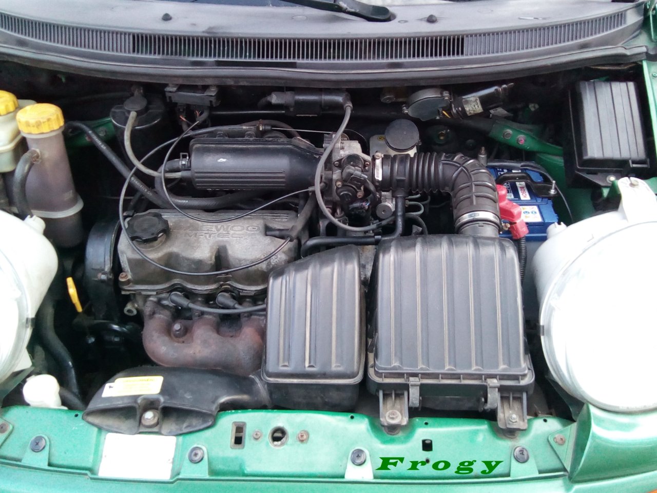 Čauky lidi,díky za přijetí.Koupil jsem si své první auto Daewoo Matiz 0.8 3válec r.v 2000.Auto jsem kupoval od kamaráda trošku zašlé.Moje první opravy byly výměna gum ze zimních,které tam byly 3 roky zpuchřelé za letní na hezčích plecháčích 13´´.Výměna svíček,motorového,převodového oleje,chladící kapalina,termostat,vzduchový a motorový filtr,kompletní úklid vnitřku + rozleštění laku mírných škrábanečků,výměna stěračů,dotažení šroubů palubovky,oprava kastlíku a baterka BOSCH,oprava velkého škrábance na obou dveřích ve spodní části vykitované a stříknuté do zelené metalízy a pro jistotu i ošetřené prahy.Jinak brzdy tam byly dělané před 2 roky předek i zadek,jde vidět že byly vyměněné i brzdové trubičky a 3.díl výfuku,topení.Ještě mě čeká výměna těsnění pod víkem ventilů,výměna ložisek kol předek i zadek (ložiska od FAGU),výměna ostřikovačů.Jinak stav kastle nádhera nikde nic zrezlého ani zevnitř,kabeláž vypadá vzhledově nově.Najeto má podle kontroly VIN STK poctivých 79 582 km bez přetáčení.Jediný co mě štve tak mám zeblitý motor.Kontroloval jsem po koupi stav oleje motoru a hladina ve vaně byla v pořádku.Jinak z vany a kolem přes těsnění vany nic neteče,je to zeblité nejvíc z pravé strany jak je rozvoďák a od víka ventilů lehce.Nevím tedy jestli předchozí majitel rozlil olej na motor při plnění nebo jestli není v pr.. těsnění pod hlavou.Olej neuniká auto jede bezproblémů.Snažím se ho dát do kupy aby můj matiz(žabák) zažil ještě normálního člověka kterej se o něj postará.Jediné co mi nefunguje jsou mlhovky,vnitřní světlo a osvětlení spz.Myslíte že může být těsnění pod hlavou K.O. a jak moc by to vadilo.Nejradši bych u něho jenom ležel a měnil opravoval a vůbec by mi to nevadilo ani časově.Později přidám i foto :) :D